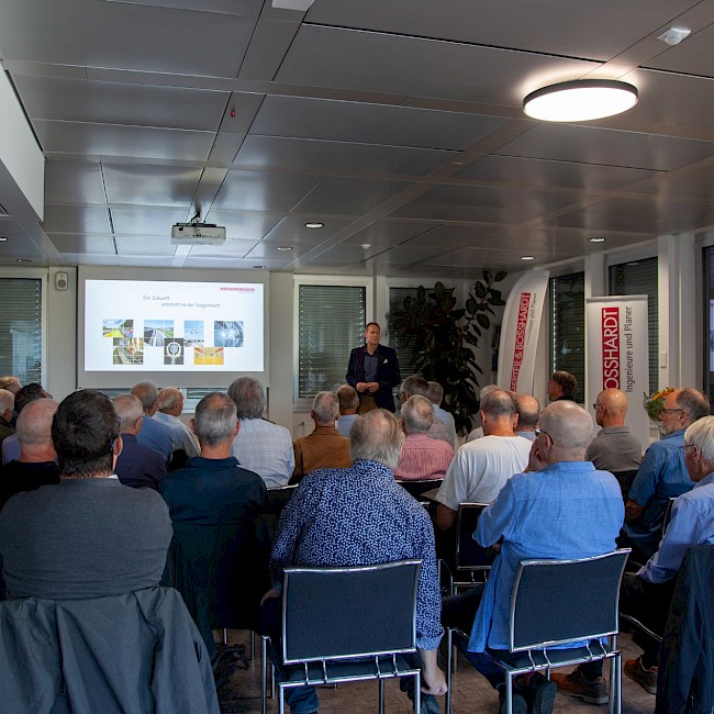 Aegerter & Bosshardt war Gastgeberin bei der Herbstveranstaltung der Vortragsreihe des suisse.ing - Schweizerische Vereinigung Beratender Ingenieurunternehmungen Regionalgruppe Basel. Nach dem spannenden Vortrag des CEO der IWB Industrielle Werke Basel über die Strategie für eine moderne Energieversorgung servierte das Milchhüsli Allschwil auf unserer Dachterrasse ein feines Raclette. Die angeregten Diskussionen klangen erst spät am Abend aus.