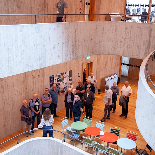 Auch dieses Jahr sind viele unserer Pensionierten zusammengekommen, um am Pensioniertentreffen teilzunehmen. Der Anlass begann mit einem Besuch unserer Baustelle an der Socinstrasse, wo derzeit ein umfassender Umbau sowie ein teilweiser Ersatzneubau für das Institut für Rechtsmedizin (IRM) entsteht. Vor Ort erhielten wir spannende Einblicke in die aktuellen Bauarbeiten, insbesondere in den Rückbau der ehemaligen Diagnostischen Klinik des Schweizerischen Tropeninstituts sowie in die geplante Umgestaltung und Erweiterung des Gebäudekomplexes.