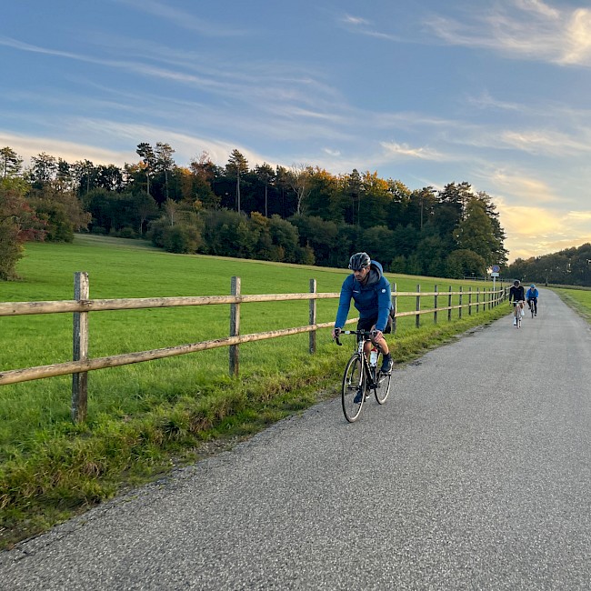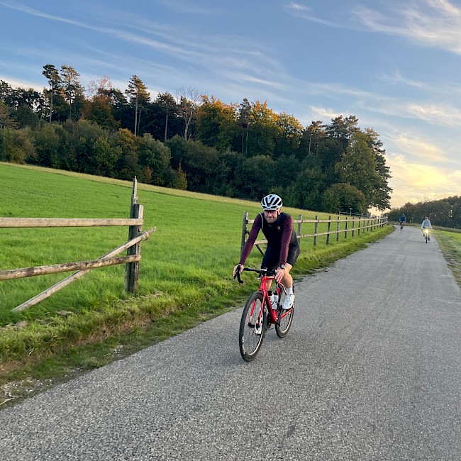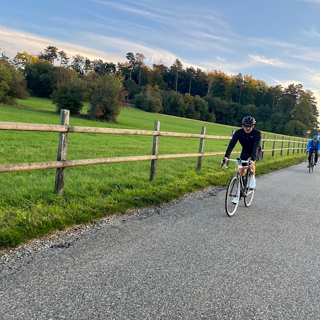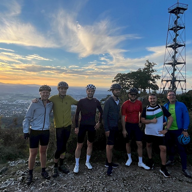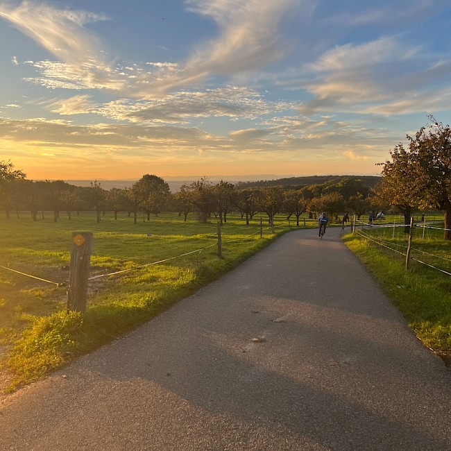 Am Dienstag, 07. Oktober 2025 fand die erste Saison des AEBO-Veloclubs ein gebührendes Ende. Mit einem 7-köpfigen Fahrerfeld - darunter Neumitglieder - wurde via Dreispitz, Arlesheim und Dornach der klassische Gempen-Anstieg mit insgesamt 500 Höhenmetern in Angriff genommen. Dank dem fulminanten Effort des Feldes blieb Zeit für einen Abstecher zur Schartenflue, wo Ausblick und Abendsonne uns rasch den Atem wiederfinden liess. Wagemutig ging es in rasanter Talfahrt Richtung Muttenz und weiter zum wohlverdienten Cordon-Bleu im Restaurant Auhafen.