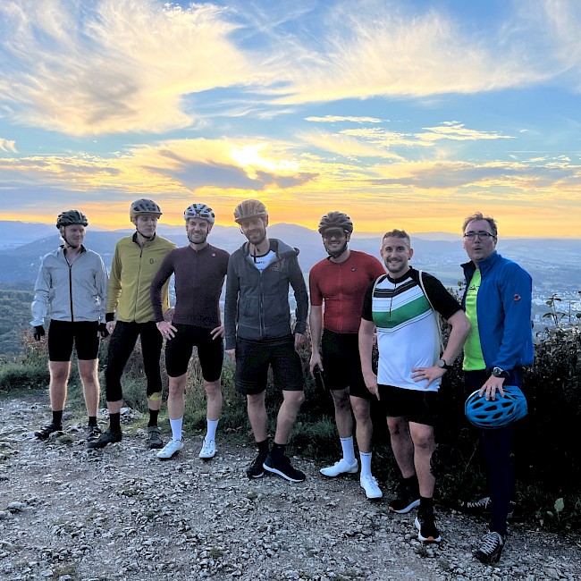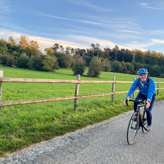 Am Dienstag, 07. Oktober 2025 fand die erste Saison des AEBO-Veloclubs ein gebührendes Ende. Mit einem 7-köpfigen Fahrerfeld - darunter Neumitglieder - wurde via Dreispitz, Arlesheim und Dornach der klassische Gempen-Anstieg mit insgesamt 500 Höhenmetern in Angriff genommen. Dank dem fulminanten Effort des Feldes blieb Zeit für einen Abstecher zur Schartenflue, wo Ausblick und Abendsonne uns rasch den Atem wiederfinden liess. Wagemutig ging es in rasanter Talfahrt Richtung Muttenz und weiter zum wohlverdienten Cordon-Bleu im Restaurant Auhafen.